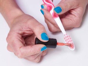 • Toothbrush: As much as it sounds messy, toothbrushes can give you one of the beautiful patterns from the vast book of nail designs. Pick bright sunset colours on a black coat of nail polish and see how it look parlour-perfect!