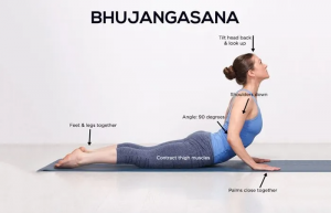 How to – Lie down on your tummy with your palms placed near your head. As you are exhaling, lift your head and chest by stretching your arms.
