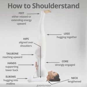 How to – Lay down on your back, facing the ceiling. Gently lift your legs and hips straight up by supporting your back with your hands. Remain in the position for a few minutes.
